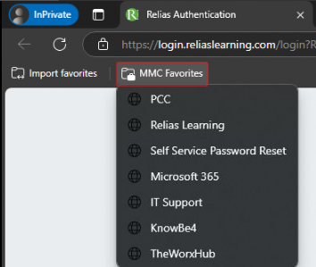 Other necessary websites will be able to be accessed through “MMC Favorites” found on the left side of the bookmarks bar.